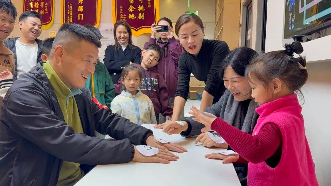 活动伊始,轻松有趣的“手指游戏”迅速点燃了现场气氛。随后,“数字魔法”环节精彩不断——在“钟表游戏”中,亲子家庭一起辨认时间;在“母鸡下蛋”游戏中,孩子们化身小小计算员,快乐地数着“母鸡”下的“蛋”;“绳子游戏”则考验着家庭的协作与空间思维;最后的“智力小测试”更是调动了全场的大小脑袋,一起迎接逻辑的挑战。
