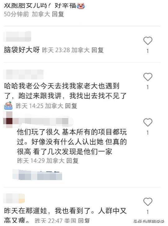 熊黛林一家人的加拿大之行充满了欢乐和幸福。他们用自己的方式享受着生活的美好,也向世人展示了一个幸福家庭的典范。而这一切都被那位眼尖的网友捕捉并分享给了大家,让更多人感受到了这份来自异国他乡的温暖和感动。